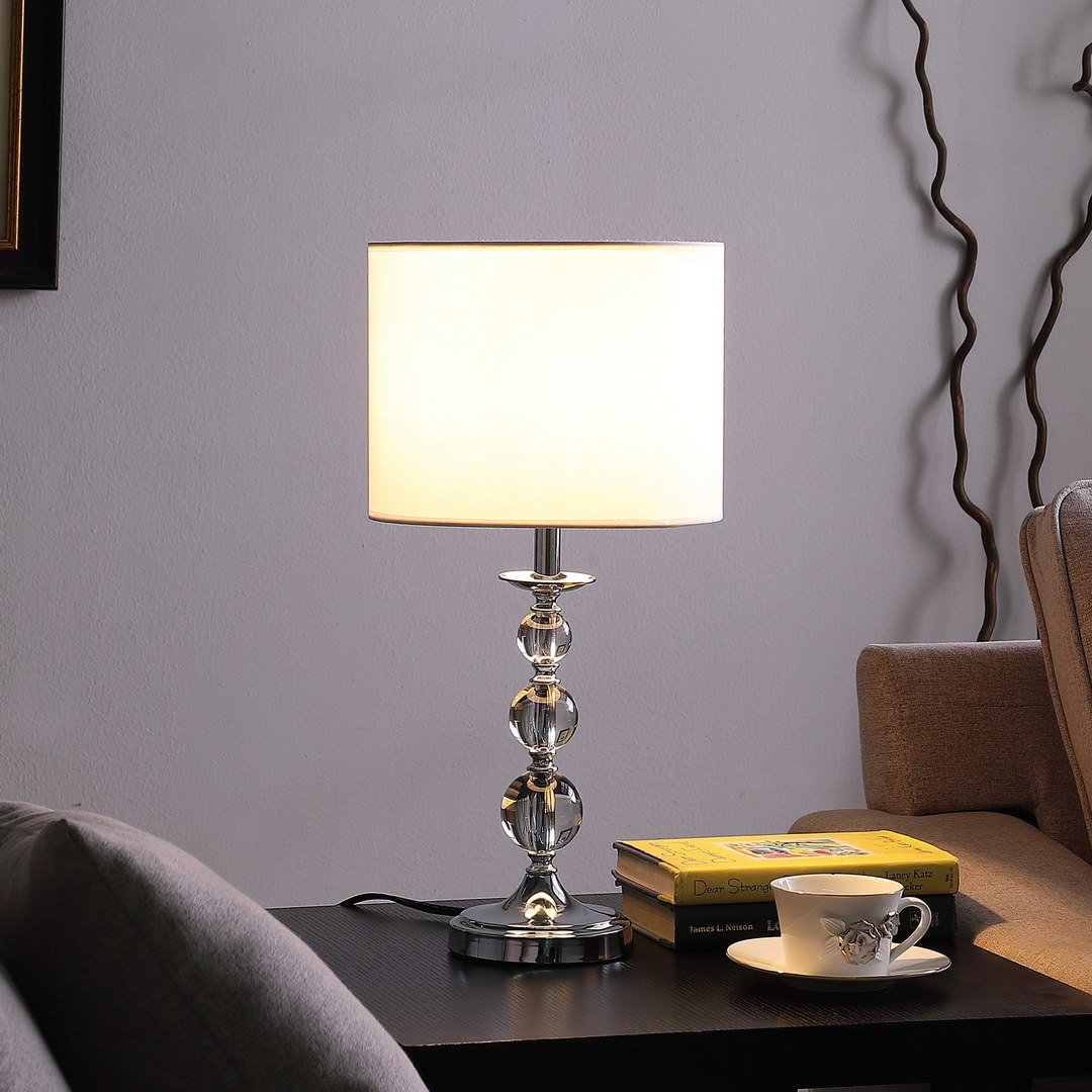 Material: Chrome Silver Metal, Imported 3 pcs clear round Crystals in different sizes, White Drum Shade