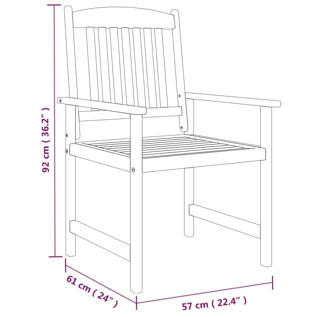 Note:In order to extend the life of your outdoor furniture, we recommend you to protect it with a waterproof cover.Each product comes with an assembly manual in the box for easy assembly.Color: GrayMaterial: Solid acacia wood with an oil finishTable:Dimensions: 78.7" x 39.4" x 29.5" (L x W x H)Features a parasol holeChair:Dimensions: 22.4" x 24" x 36.2" (W x D x H)Seat size: 18.9" x 18.1" (W x D)Seat height from the ground: 17.1"Delivery contains:1 x Table6 x Chair