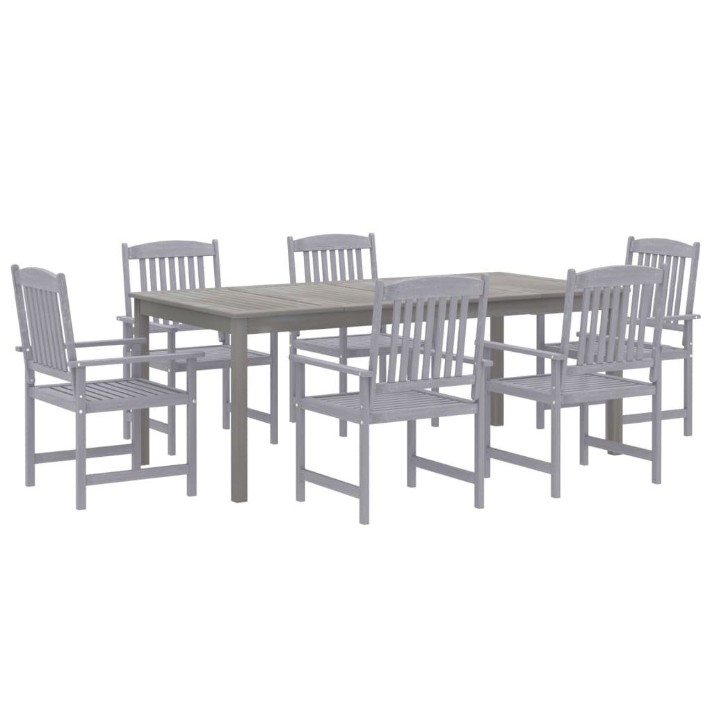 7 Piece Patio Dining Set Solid Wood Acacia Gray