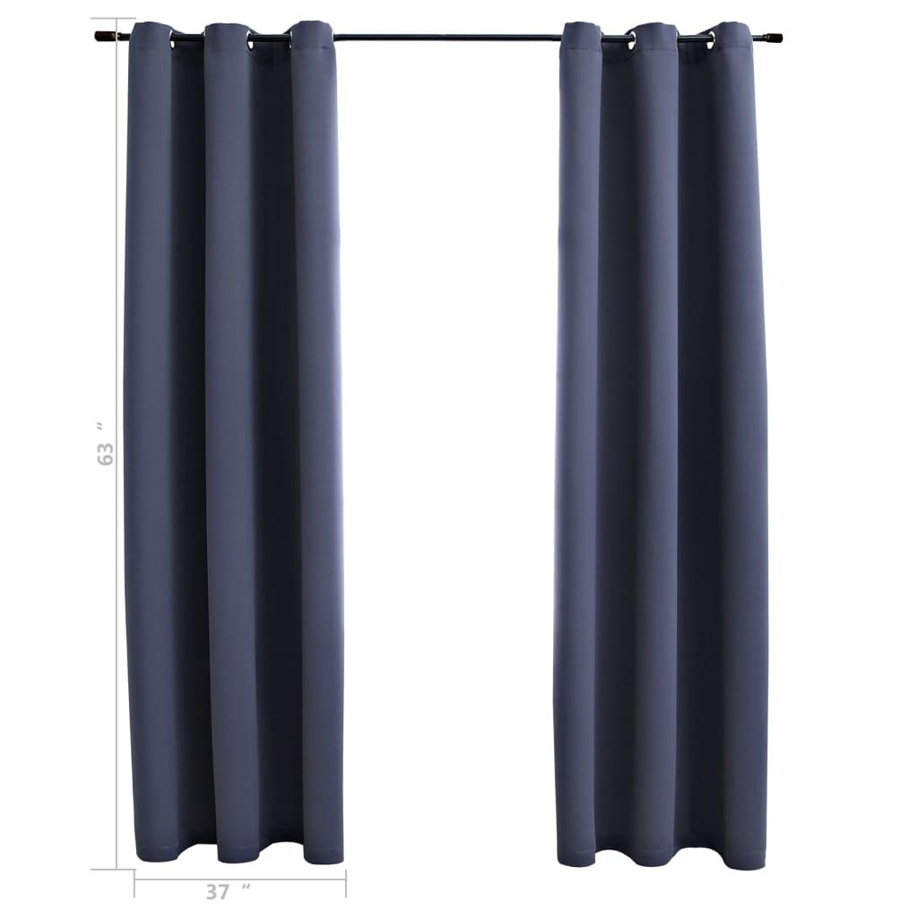 Blackout Curtains with Rings 2 pcs Anthracite 37"x63" Fabric