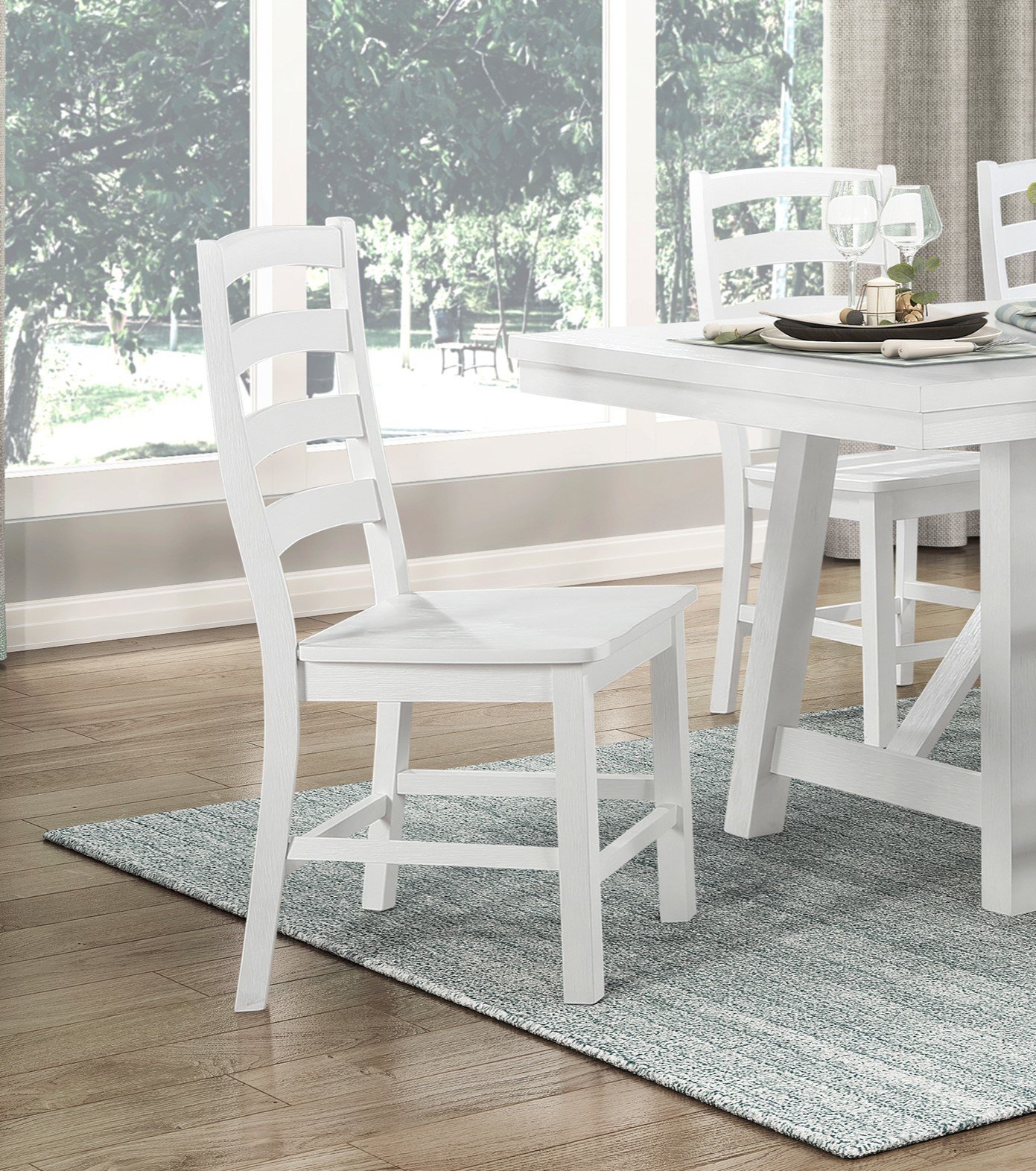 Description & DimensionsThe Redmond Collection's design is inspired by the casual farmhouse movement, utilizing unfettered lines, and natural texture to create this charming dining chair. The wood side chair's classic profile results in a casual style that solidifies your desired farmhouse aesthetic. The distinct grain of the collection's oak veneer is highlighted by its white finish.PRODUCT DIMENSIONS: Overall Dimension: 18" x 21.5" x 38.5"HSeat Width: 18"Seat Depth: 18"Seat Height: 18"Listing Includes: Set of 2 Side Chairs Only.Table: Not includedSimple Assembly Require.