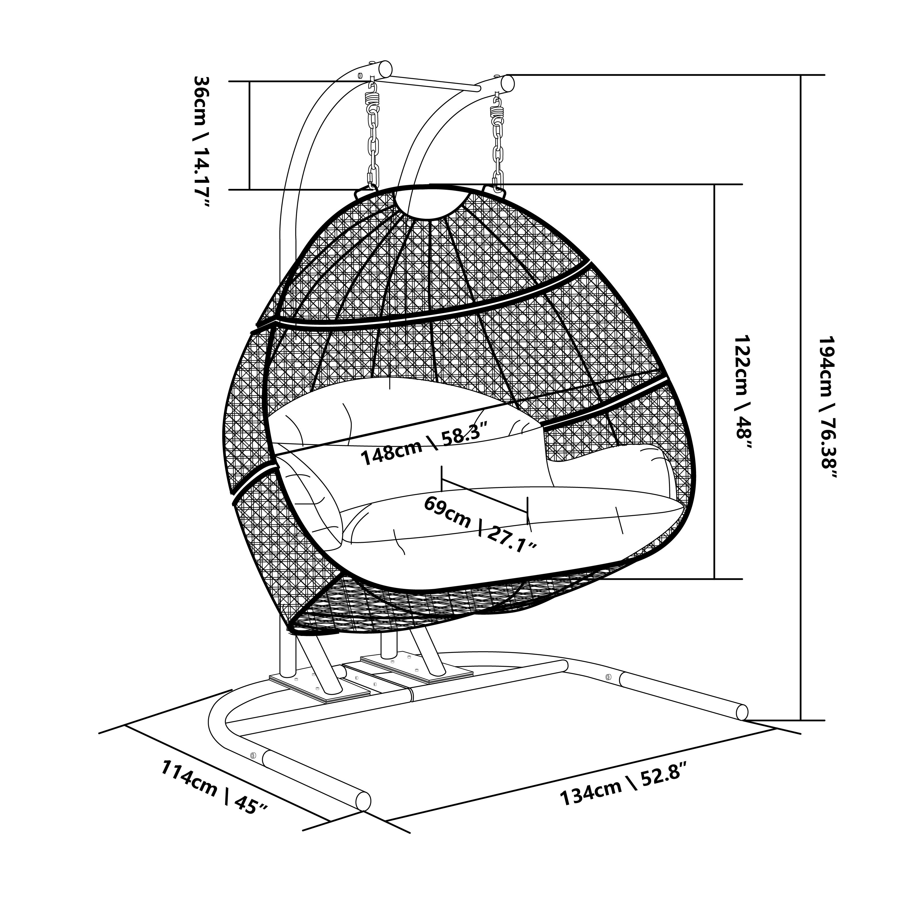 4.Supported by a stand constructed from strong and durable iron Fits 2 people and enough space for any position that you like.