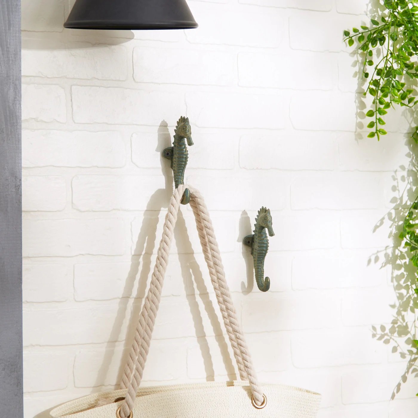 Home > Set of 2 Aquamarine Seahorse Hooks - Coastal Decor for Bathroom or Kitchen