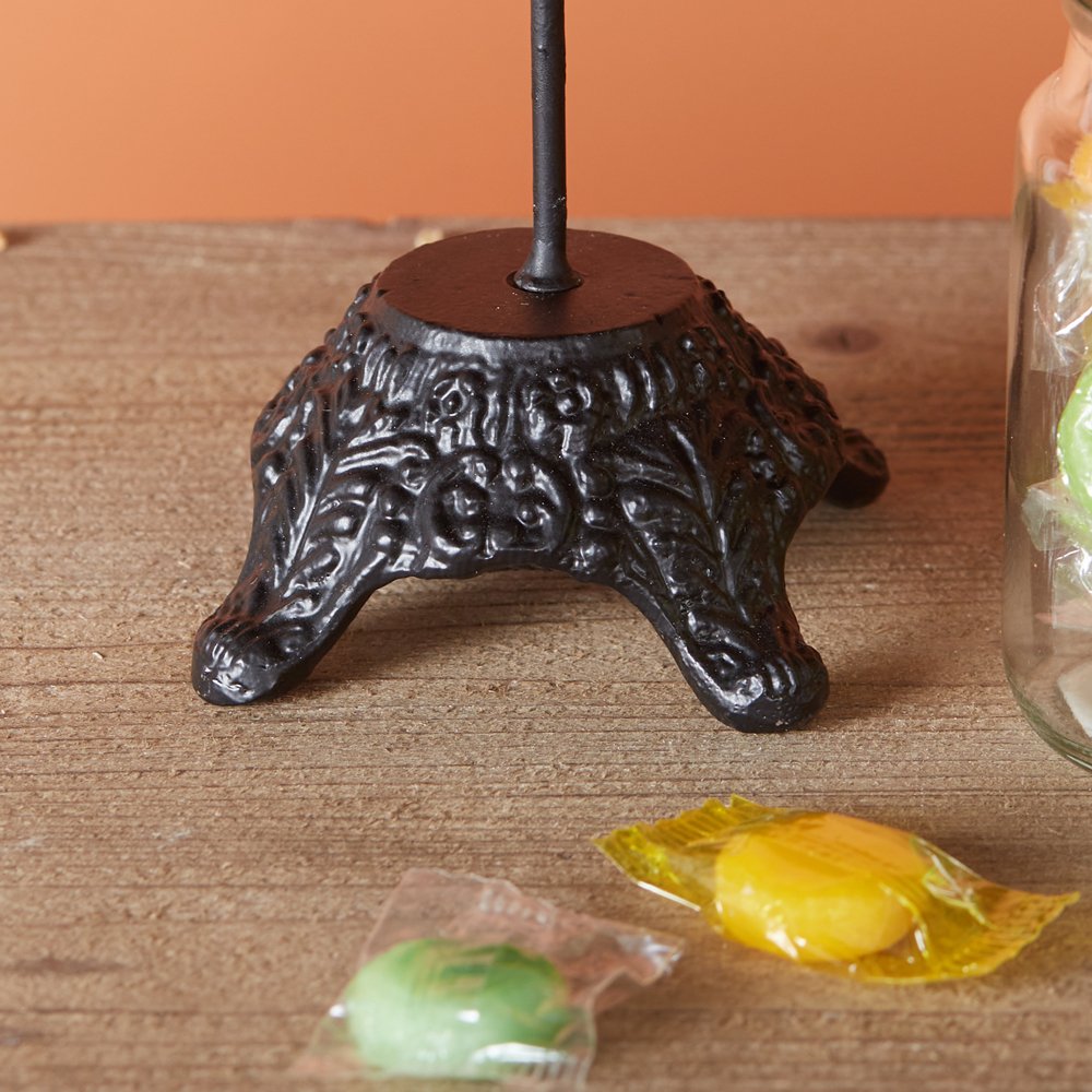 Let this Wicked Witch's Hat stay for a spell. It will bring a spooky touch into your home this Halloween. It is made of metal and sits on a stand for display.